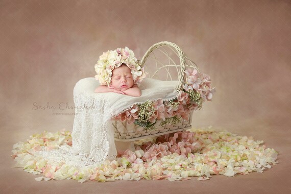 Digital Backdrop Background Newborn Baby Girl Pink Flowers Peach Cream White
