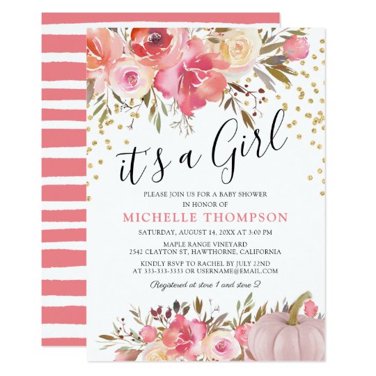 Autumn Pink Pumpkin It S A Girl Floral Baby Shower Invitation