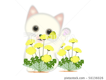 Fluffy Cat Cotton White Cat And Dandelion Stock