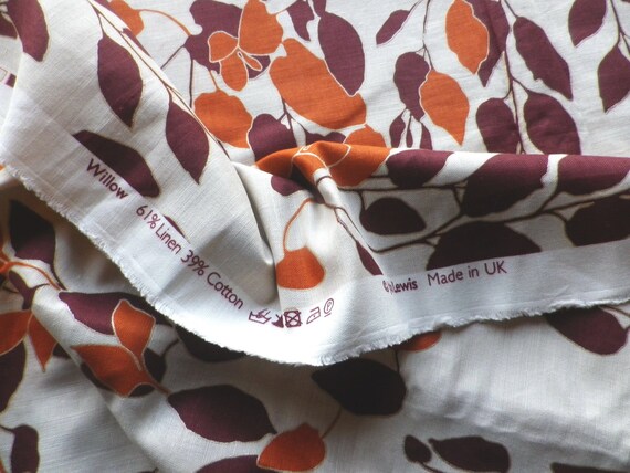 Vintage John Lewis Linen Union Interiors Fabric Willow Brown Orange Per Metre 40