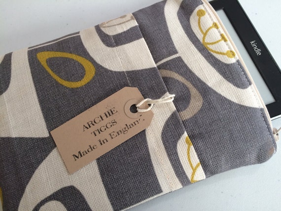 Kindle Scratch Cover John Lewis Seed Heads Retro Fabric Grey White Mustard